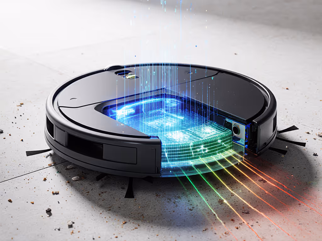 Here's where AI dirt pattern recognition transcends basic detection. Using SLAM (Simultaneous Localization and Mapping), the robot overlays dirt data onto its spatial map. If you're new to mapping tech, start with our navigation and mapping explainer. Over 3-5 cleanings, it identifies patterns: