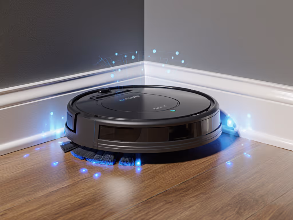 LiDAR-based navigation (laser-driven mapping) is the foundation. Unlike bump-and-go random pathing, LiDAR creates a precise room map before cleaning begins. Modern robots combine LiDAR with AI-powered object recognition, allowing them to identify walls, furniture edges, and corners with centimeter-level accuracy. Precision pathing means the robot approaches a corner at the optimal angle rather than overshooting or skipping it entirely.